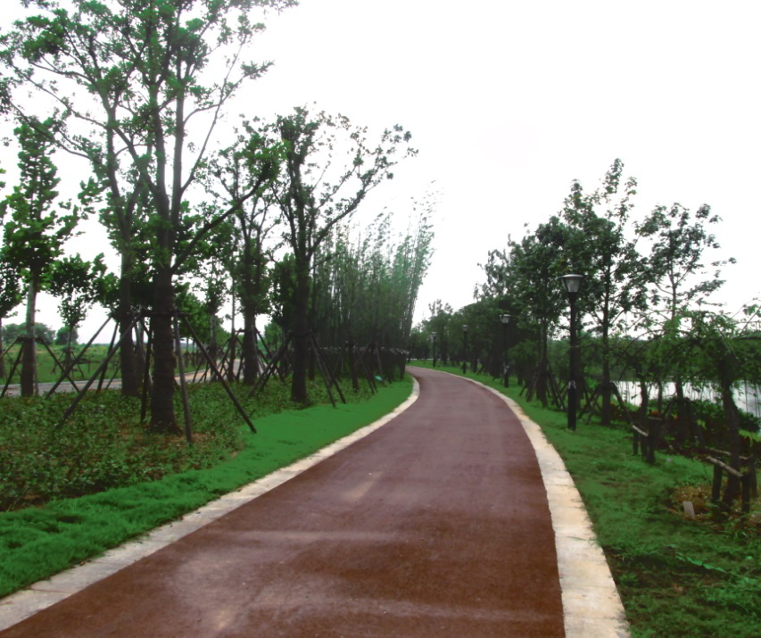 目前大象湖濕地公園景觀建設(shè)工程已基本完成,目前正進(jìn)行三米、五米路瀝青攤鋪階段。