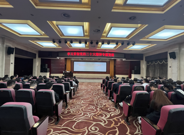 為學(xué)習(xí)好、宣傳好、貫徹好黨的二十大精神,深入貫徹落實(shí)黨的二十大部署要求,迅速在支部黨員中掀起學(xué)習(xí)熱潮,11月9日上午,機(jī)關(guān)黨支部聯(lián)合置業(yè)公司黨支部、資產(chǎn)管理公司黨支部、資產(chǎn)經(jīng)營(yíng)分公司黨支部邀請(qǐng)江西師范大學(xué)道德與倫理研究中心副主任、江西師范大學(xué)馬克思主義學(xué)院副教授、碩士研究生導(dǎo)師,江西省統(tǒng)戰(zhàn)理論研究會(huì)理事邵曉秋教授為支部黨員、發(fā)展對(duì)象、入黨積極分子講授《黨的二十大是全面建設(shè)社會(huì)主義現(xiàn)代化國(guó)家的政治宣言和行動(dòng)綱領(lǐng)——學(xué)習(xí)貫徹黨的二十大精神》專題黨課。